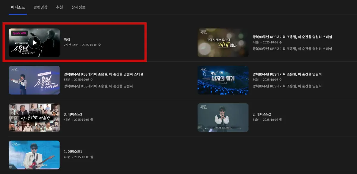 ✔ 〈광복 80주년 KBS 대기획 – 조용필, 이 순간을 영원히〉