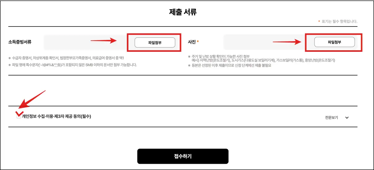 - 내용: “현재 주거 및 난방 상황을 확인할 수 있는 사진”이 반드시 1장 이상 필요합니다.